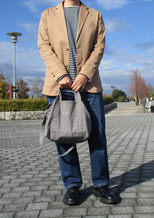 有り触れたコーディネートで、スマートに着こなすには野暮ったく感じる。スタイルが悪く感じる印象を受けた。